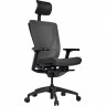Современное эргономичное кресло Schairs AEON - M01B , в сетке с тканевым сиденьем, с классическим черным каркасом.
