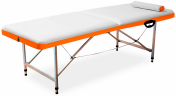 Данный стол обладает великолепным внешним видом и красивой отделкой. Его вес составляет всего 12 кг., при этом он выдерживает серьезные динамические нагрузки. Двухсекционная модель удобна для установки, складываясь пополам и пряча ножки стол внутри себя. Все элементы закрепляются специальными ремешками и прочными защелками. В сложенном виде косметологический стол напоминает чемоданчик. Для удобства транспортировки предусмотрена специальная ручка. Важно также его зафиксировать, чтобы он был неподвижен во время работы. Устойчивость можно проверить опытным путем: сесть и попытаться немного расшатать. Если он остался неподвижен, то это идеальный вариант, впрочем, если ходит лишь слегка, то это тоже допустимо.